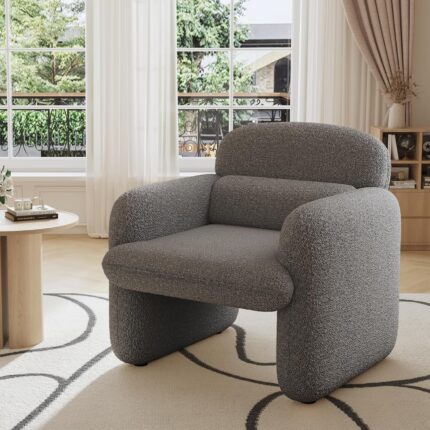 - WIDE RANGE OF APPLICATIONS: This upholstered boucle chair serves as an ideal extra plush seating perfect for small places. Whether you’re reading in the study, chatting in the living room, lounging in the bedroom, hosting guests, or using it as office furniture, this comfy upholstered armchair is a perfect choice as chair, lounge chair, reading chair, living room chair, single sofa chair, side chairs for living room, guest chair.